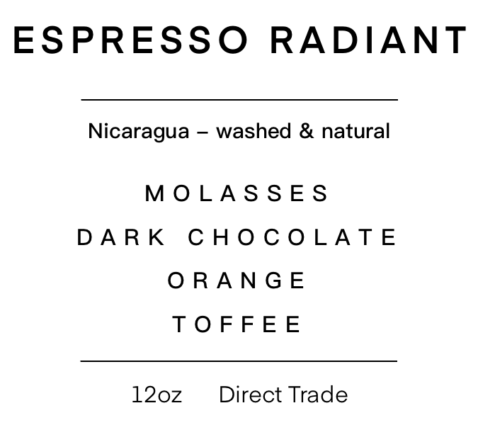 The base for this blend is a washed processed coffee from Nicaragua, providing robust body and rich caramel quality that pairs perfect with milk. The 2nd component is a natural processed coffee which adds complexity and dried fruit-like sweetness. You can also use this coffee for your everday drip or whatever method of brew you prefer!